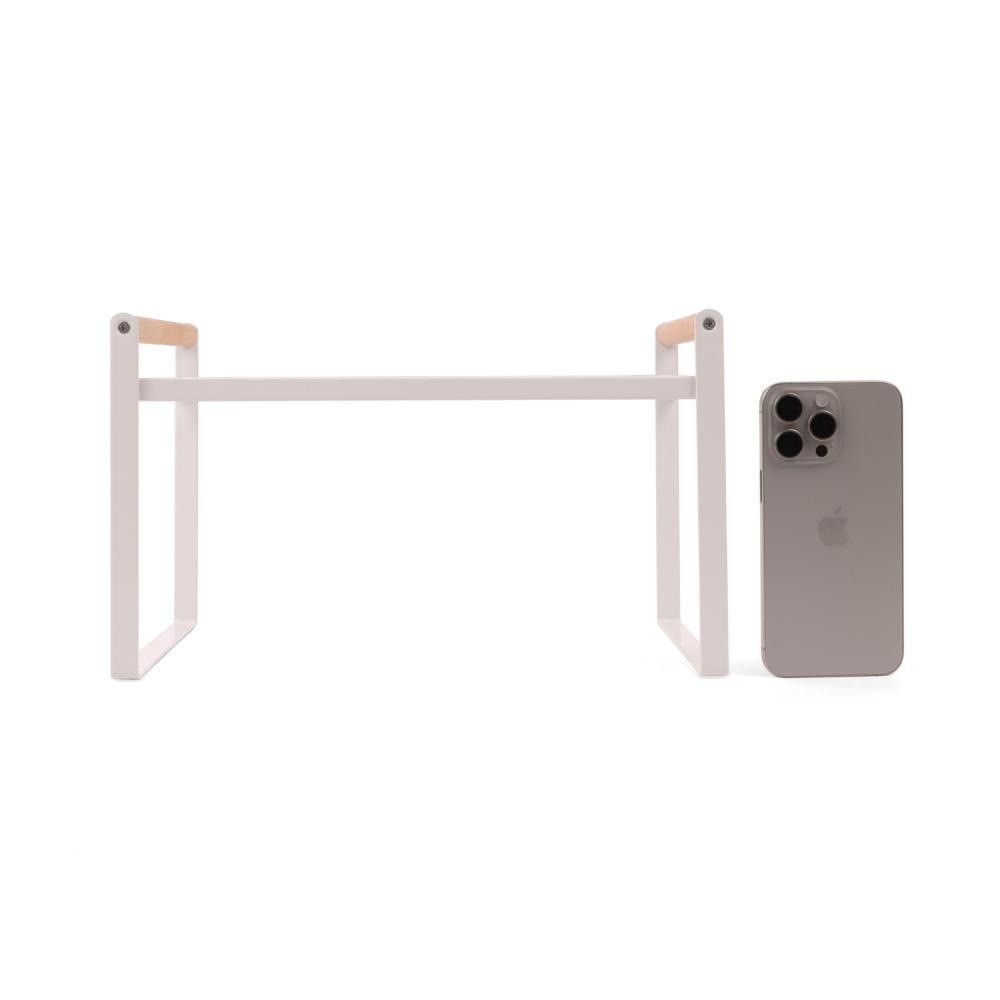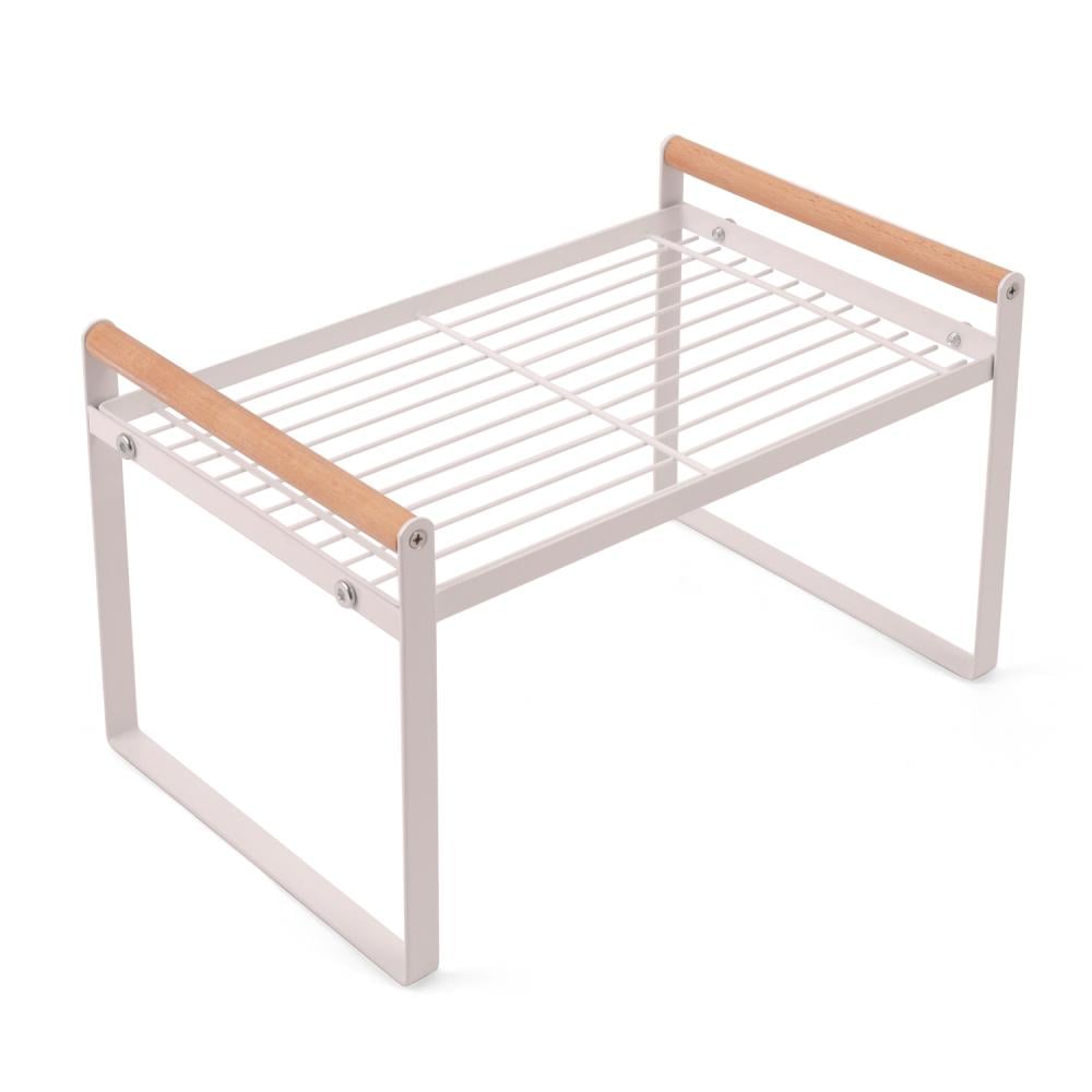 رف تنظيم الأطباق مرتفع بمقابض خشبية - لون أبيض | 33*21*20 سم