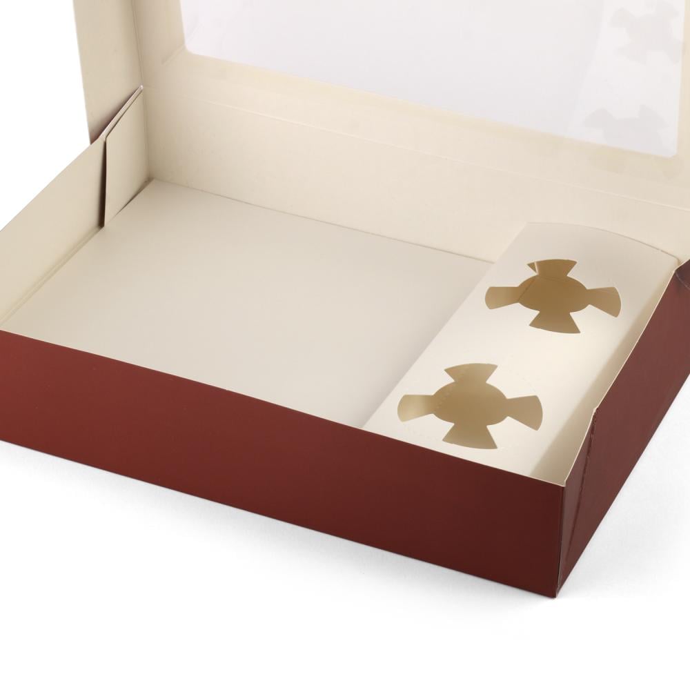 علبة فطائر وحلويات كبيرة فاخرة بنافذة شفافة وأوراق شجر لون بني - (12) حبة