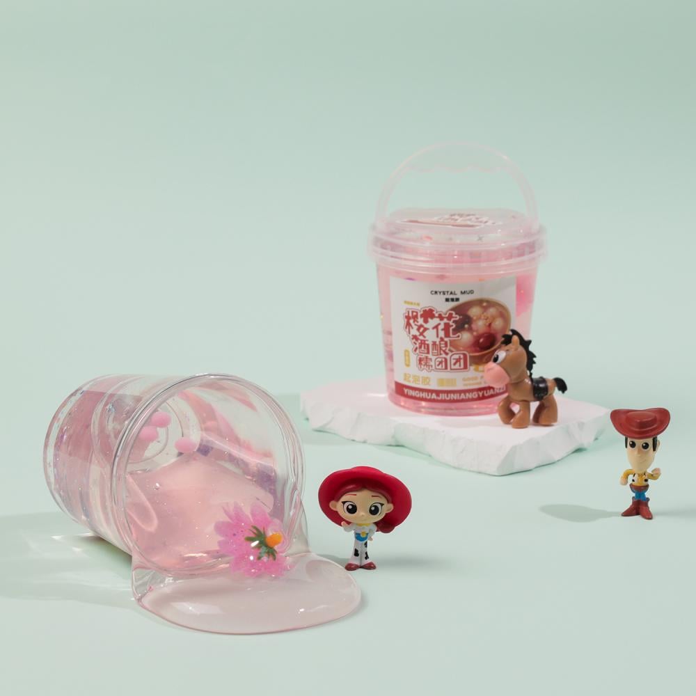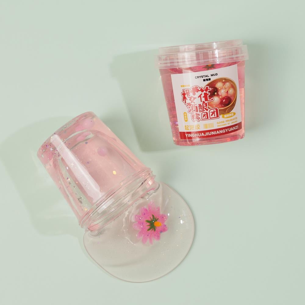 امنح الأطفال تجربة ممتعة تدمج بين المرح والتعلم مع السلايم الوردي الشفاف تتوسطه زهرة لطيفة وحولها نجوم لامعة وقلتر