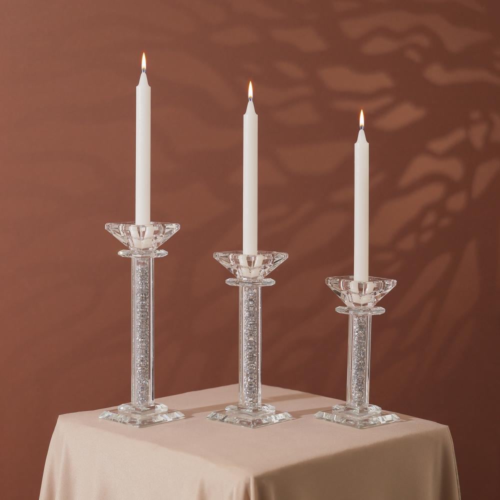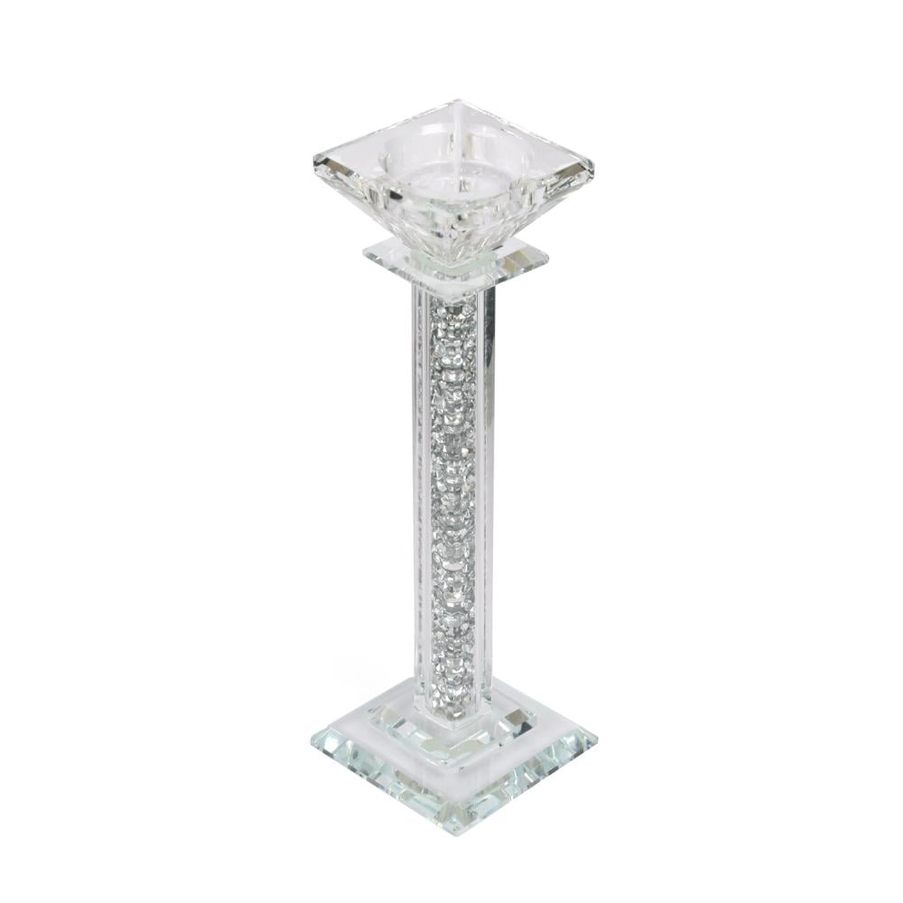 شمعدان حامل شموع زجاجي بكريستال فضي