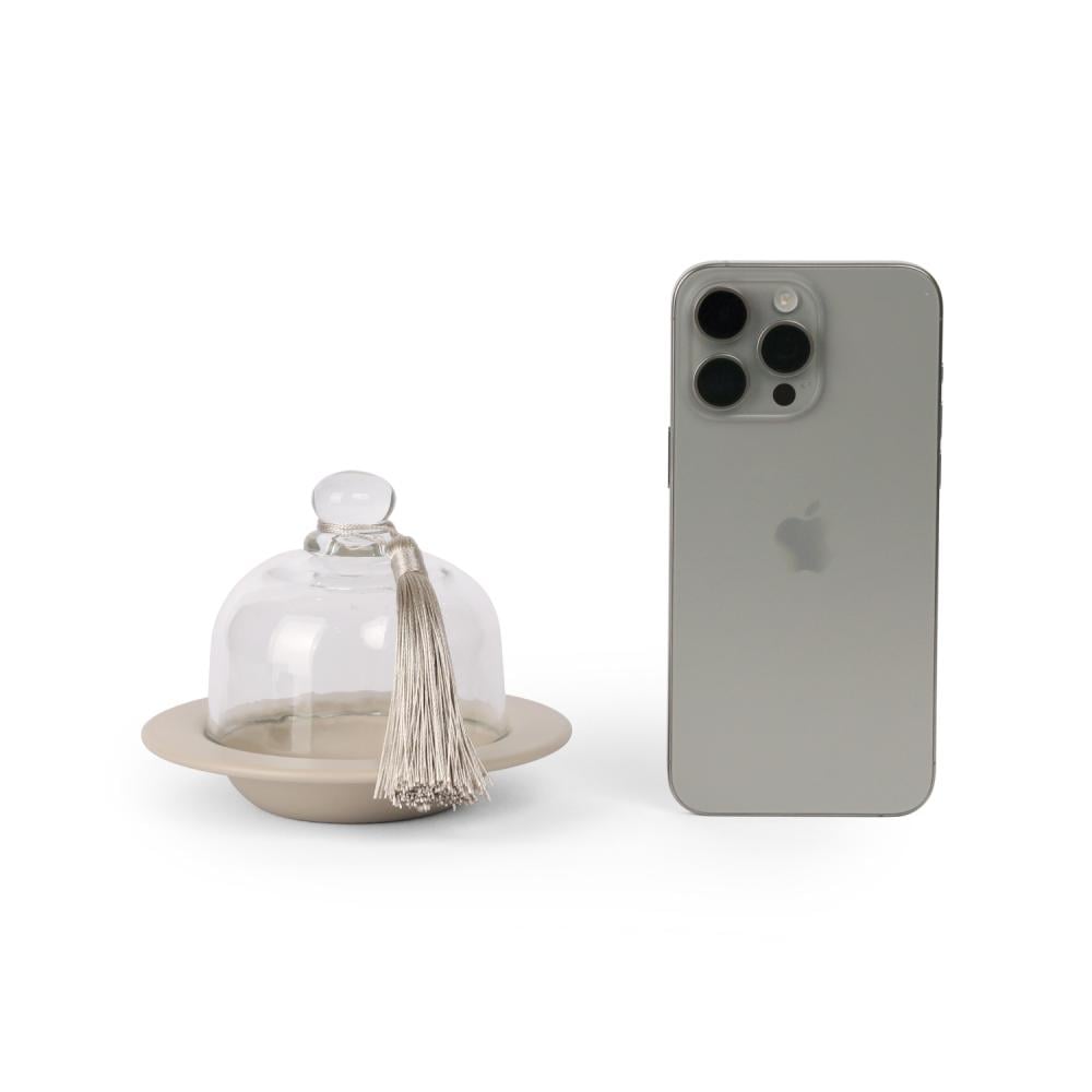 - اللون: زجاج شفاف وصحن سيراميك أبيض