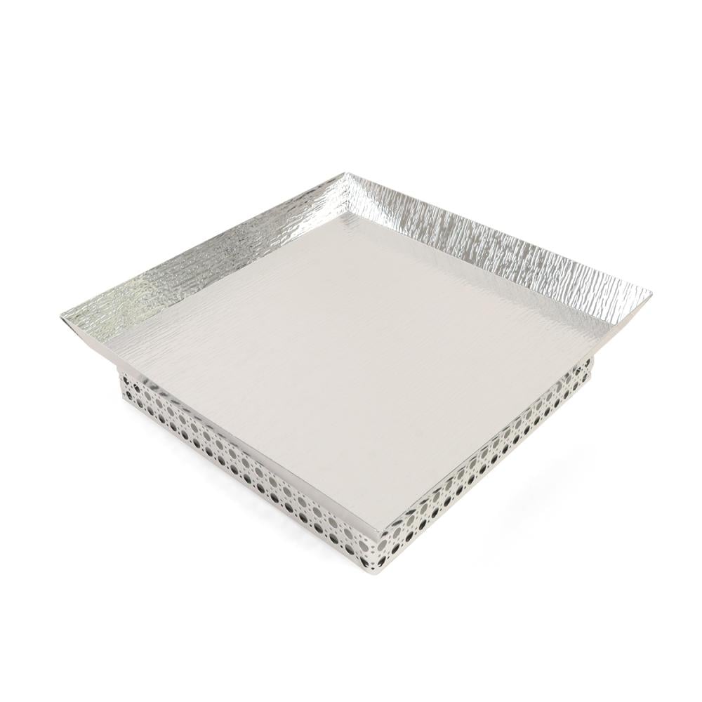 صينية تقديم مربعة باللون الفضي الأنيق