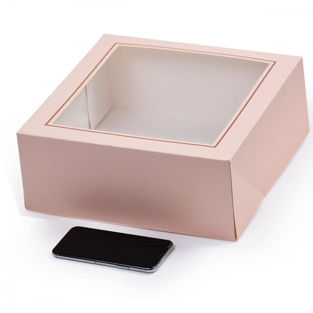 مجموعة (12) علبة كيك وردي بتصميم فاخر ونافذة شفافة