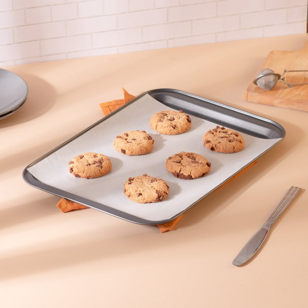 - احصل على ورق زبدة للفرن الآن وودع مهمة إزالة بقايا الأكل والدهون الصعبة من الصواني