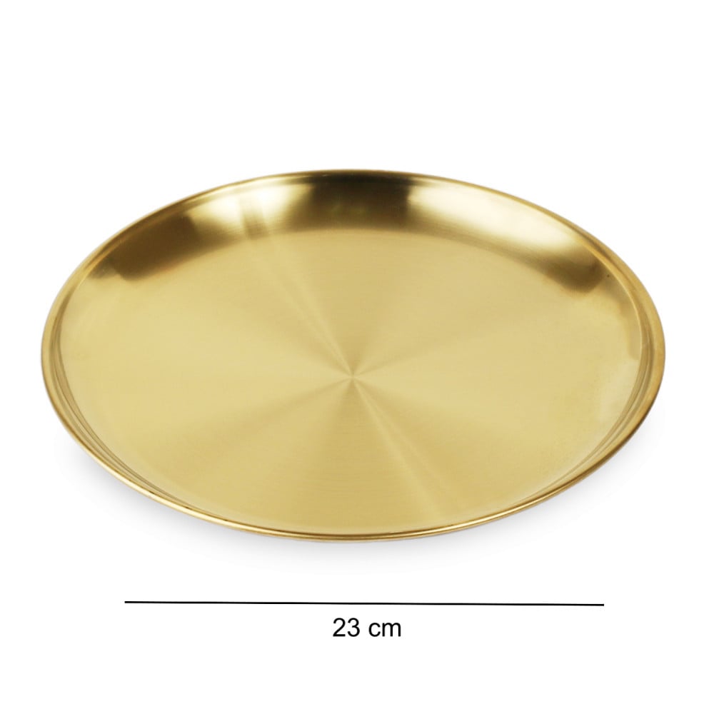 أضف لمسة عصرية إلى مائدتك باستخدام صحن تقديم فاخر باللون الذهبي اللامع المصنوع من مادة الستنانليس ستيل المقاومة للصدأ، يتميز الصحن ببروز أطرافه والي تساعد على منع انسكاب الطعام خارجهمناسبة للمطاعم، المقاهي و المنزلمناسبة لتقديم الحلويات الشرقية (الكنافة، البسبوسة) ، الكيك، الشوكولاتة، الأرز، المخبوزات والمكرونةمقاوم للصدأسهل التنظيفقطر الصحن: 23 سماللون: ذهبيالكمية: 1 صحن
