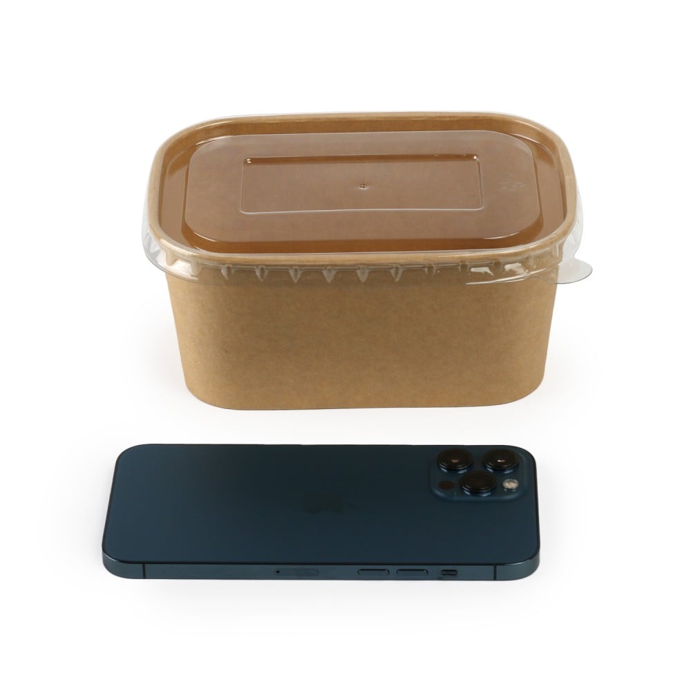 مميزات وعاء ورقية كرافت مستطيل مع غطاء شفاف