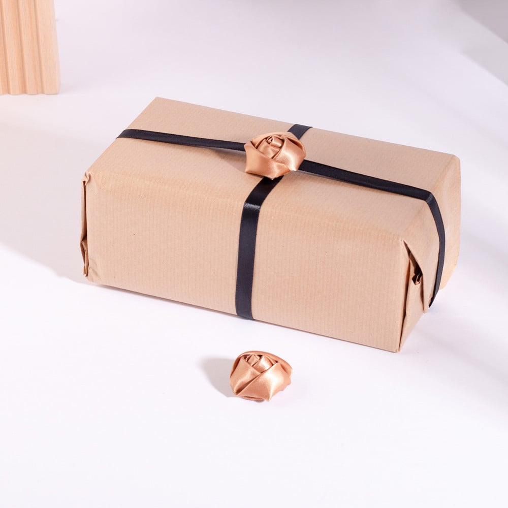 - أضف لمسة مميزة وأنيقة للهدايا والتوزيعات بإستخدام ورود ساتان باللون البني الفاتح، كل ماتحتاجه لتثبيت الوردة هو وضع القليل من الصمغ الساخن وتركها حتى تجف وتثبت
