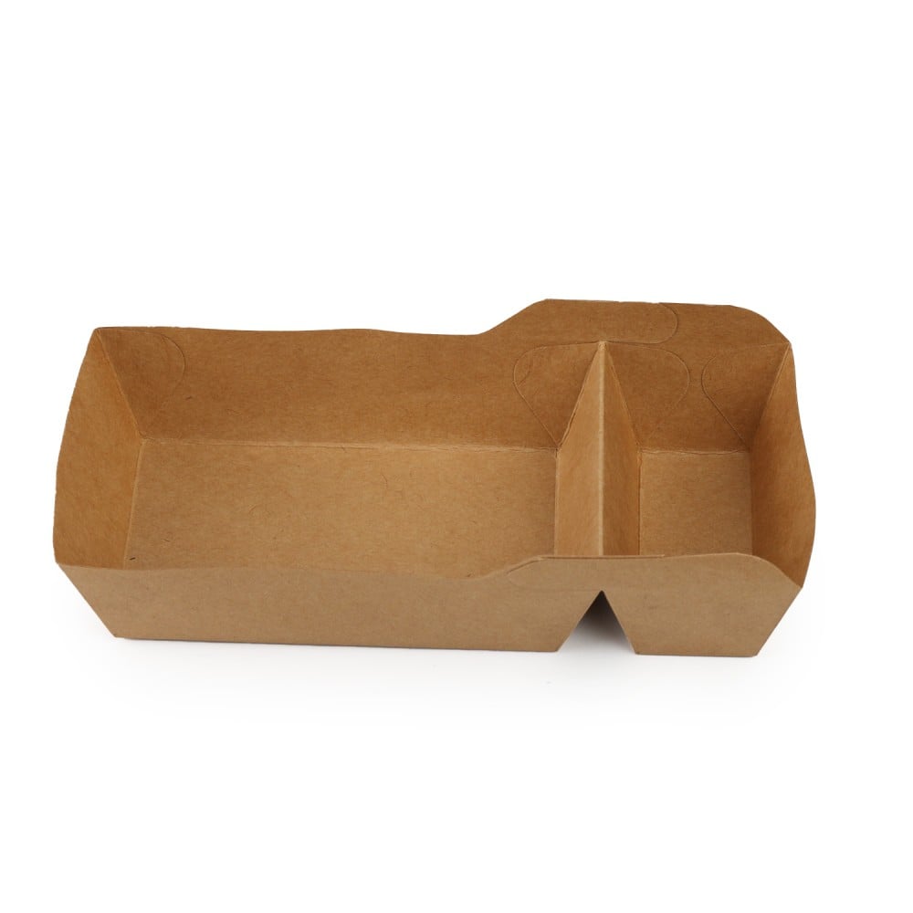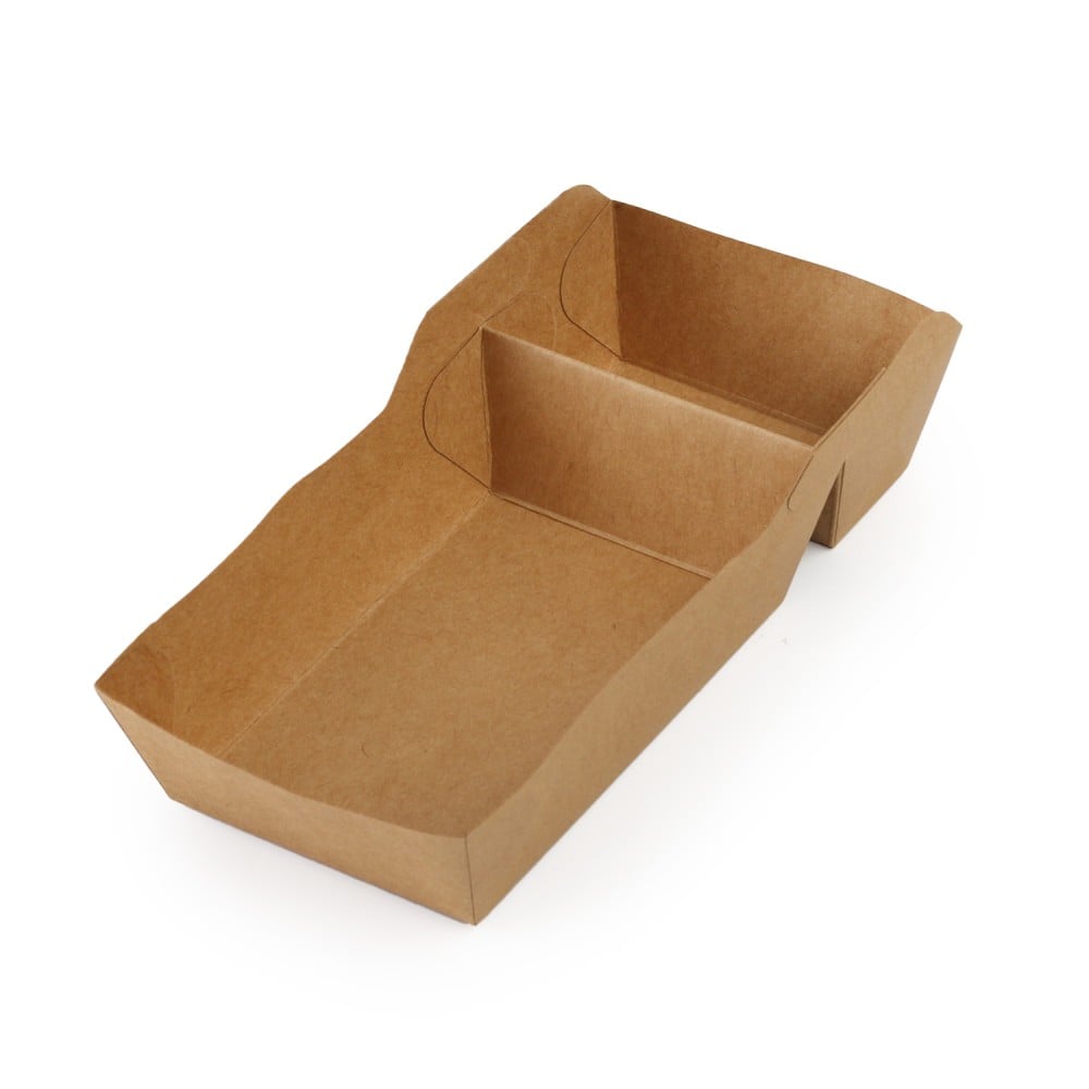 إذاً جرب صحون ورق كرافت بلون بني وقسمين ، قسم أكبر للأطعمة والقسم الأخر للصوصات من صفقات.