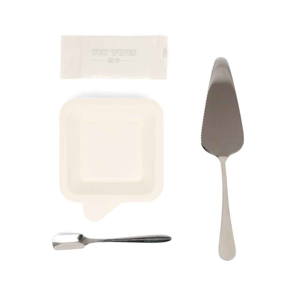 - كل شيء متوفر في طقم واحد ليختصر عليك التنسيق يتضمن 6 ملاعق بتصميم أنيق، 6 صحون عملية مناسبة لتقديم قطع الكيك والحلويات، و6 مناديل مبللة فردية لراحة الضيوف بعد التقديم