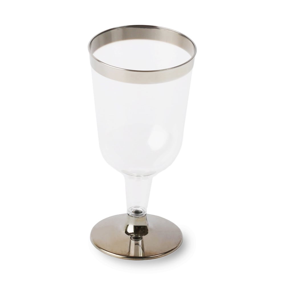 • Distinguish yourself from serving drinks in a luxurious and delicious way by purchasing this set of wonderful plastic cups. The cup features silver rims and a shiny base that helps stabilize the cup and give it a beautiful, sophisticated character.