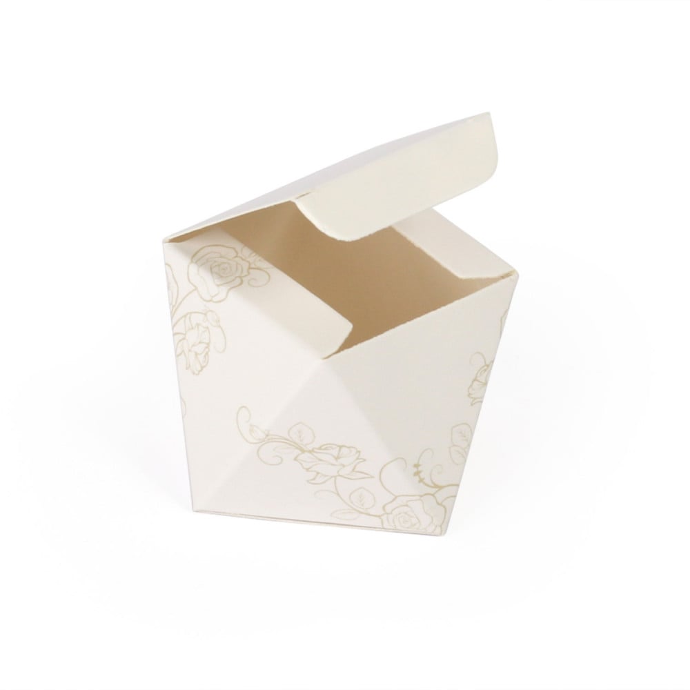 Share the feelings of joy and happiness with your family and loved ones by presenting them with luxurious distribution boxes in a calm white color and a golden rose pattern from Deals, designed in a polygonal shape.