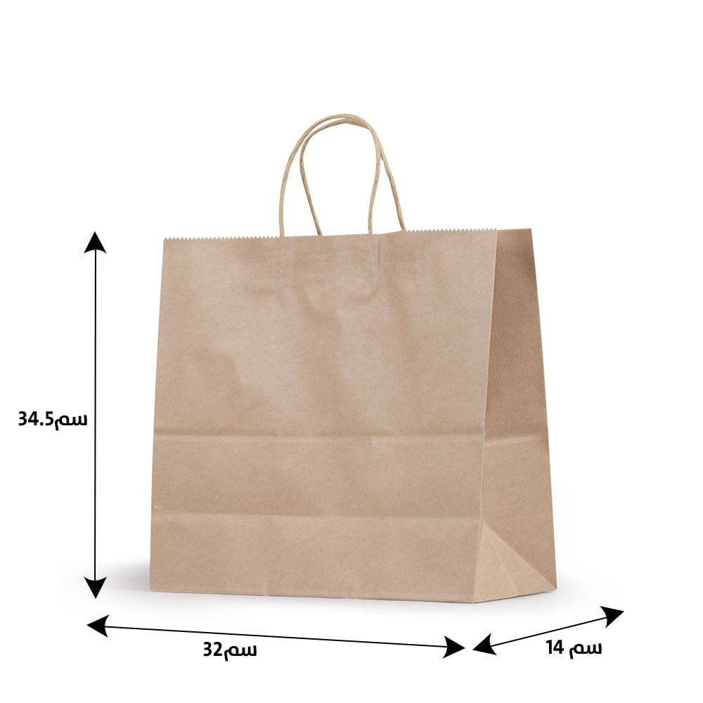 paper bag Easy-to-hold handle Brown color accidental Height: 34.5 cm Length: 32 cm Width (base): 14 cm