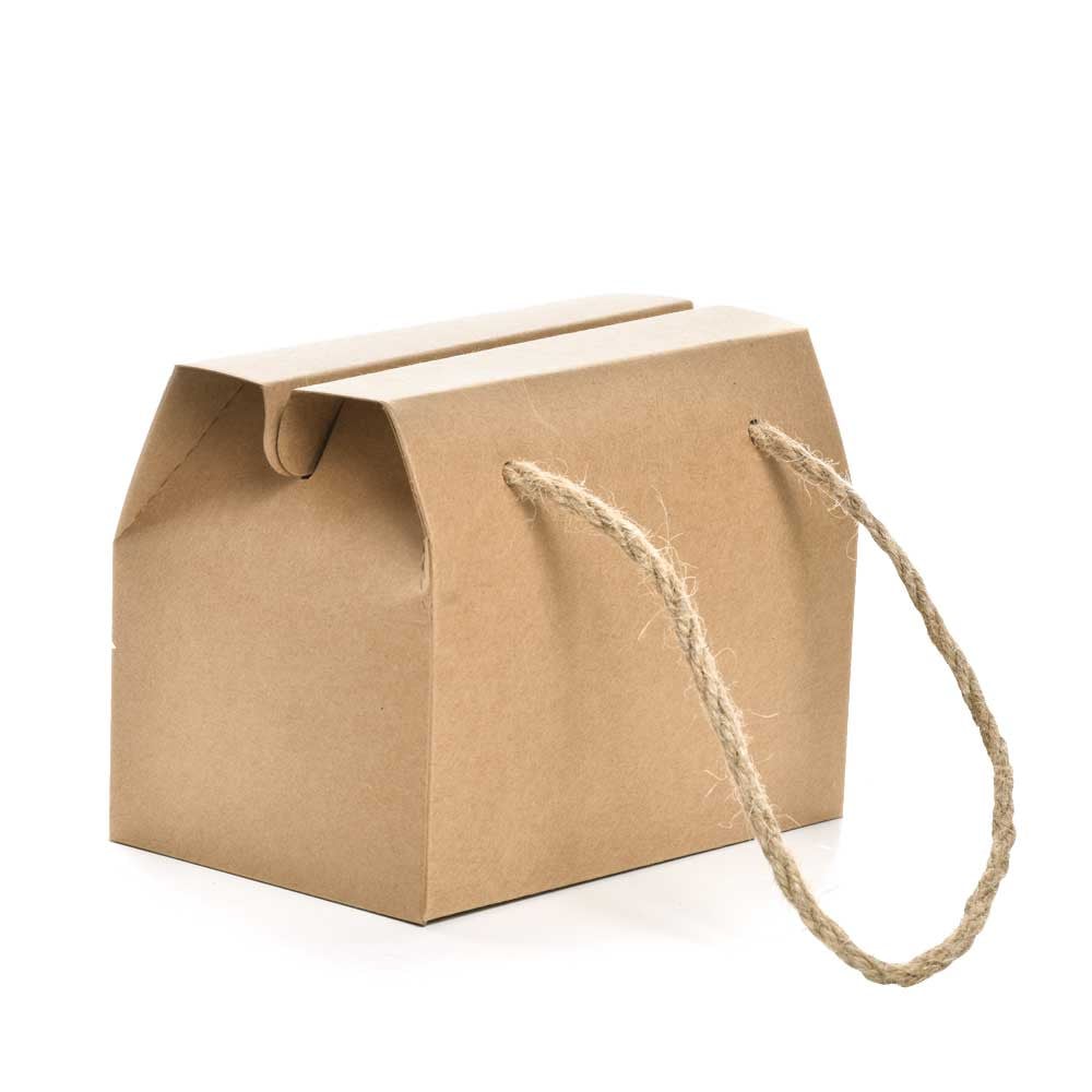 • علبة كرتونية تستخدم لتغليف المنتجات والهدايا مزودة بحبل خيش للحمل مع امكانية اغلاق العلبة من الاعلى